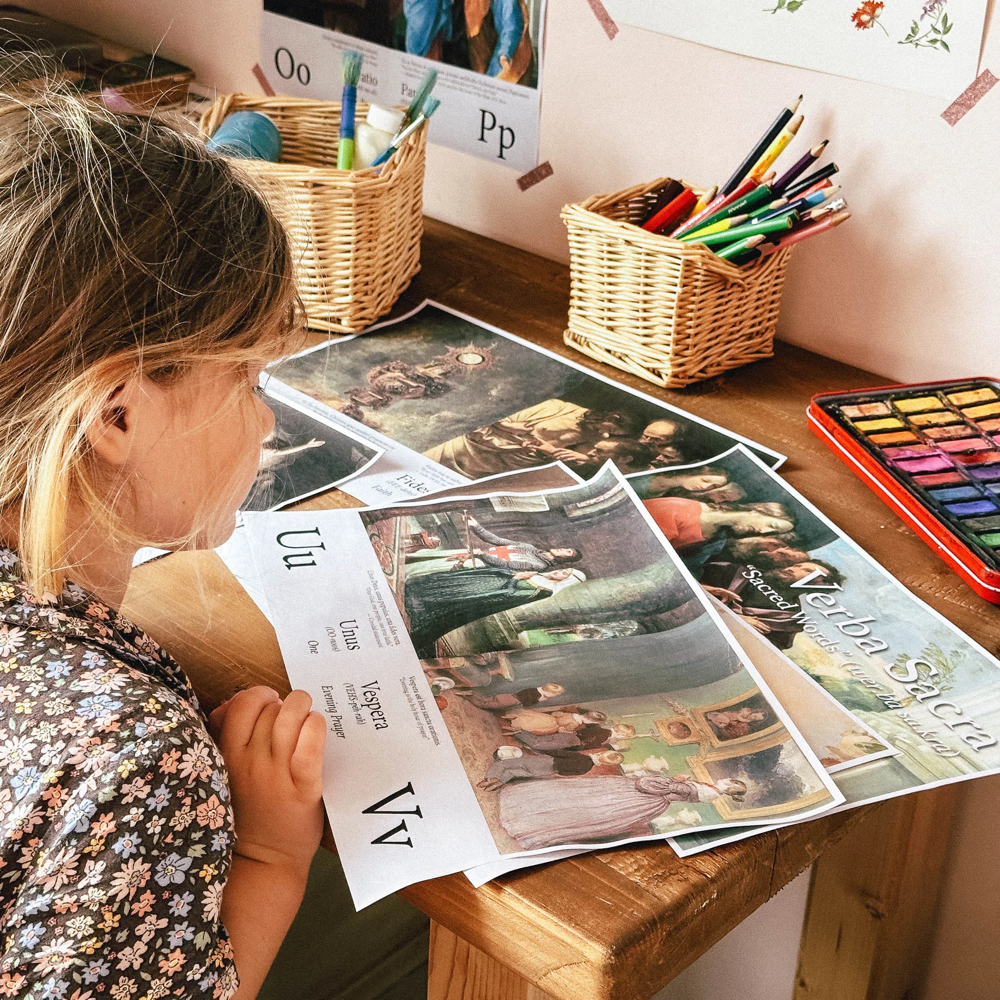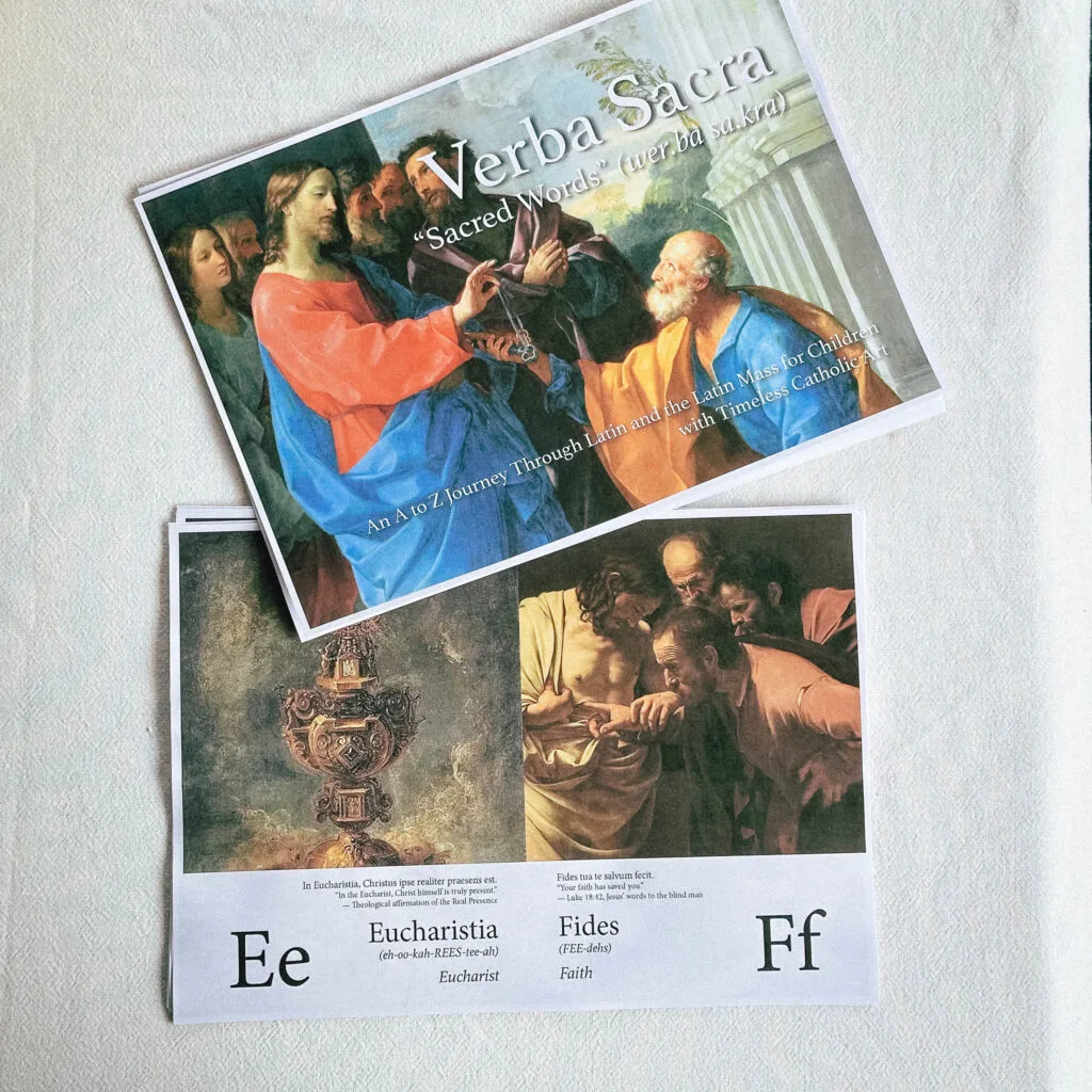 Shop nowVERBA SACRA is an engaging ABC booklet for 3-8 year-olds to explore basic Latin through the Traditional Latin Mass. Each letter features a Latin word, its English translation, pronunciation, a contextual phrase from the mass or scripture, and timeless Catholic artwork.