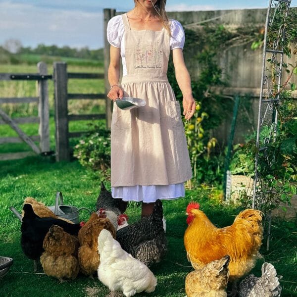 Each apron is thoughtfully designed by ArchangelDesign and lovingly embroidered by a small, family-run embroidery shop in the English countryside, making every piece truly unique.