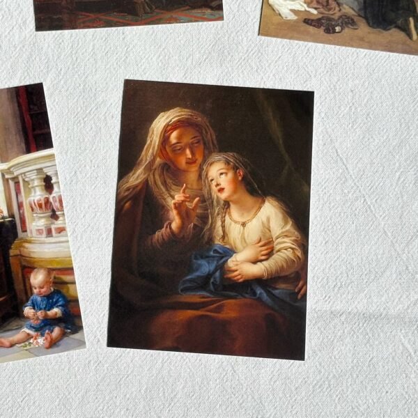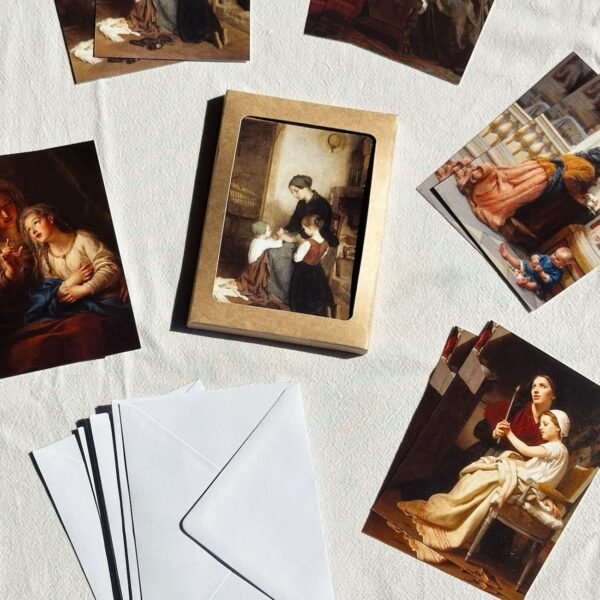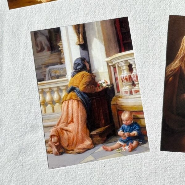 This beautiful collection of artwork celebrates the sacred and vital role of mothers within the Catholic faith, capturing intimate moments of prayer between mothers and their children. The pieces serve as a powerful reminder of the deep spiritual bond shared in these tender moments, where faith, love, and devotion intersect. In the Catholic Church, motherhood is viewed as a profound vocation—one that nurtures not only the body but also the soul, guiding children toward a life of faith and virtue. These images beautifully reflect the maternal mission to teach, protect, and raise children in the love and knowledge of God, a mission that has been revered throughout Church history.